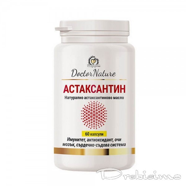 Астаксантинът е част от групата на каротеноидите и се получава от някои видове водорасли, скариди, крил и др. Именно астаксантинът придава розовия цвят на скаридите. Антиоксидантната му активност е изключително висока – днес се смята за един от най-мощните антиоксиданти, познати на човека, като наред с това е един от малкото, способни да достигнат до всяка човешка клетка, в това число успешно преминава през кръвно-мозъчната и кръвно-ретиналната бариери, недостъпни за голяма част от другите антиоксиданти и активни вещества. Благодарение на това, приемът на астаксантин предоставя изключителна защита и подкрепа на мозъка, очите, нервната система. Астаксантинът на Dr. Nature съдържа естествено астаксантиново масло, добито от сладководни водорасли Haematoccus pluvialis, за разлика от много хранителни добавки със синтетичен астаксантин, които имат само около 30 % от антиоксидантния капацитет на натуралния астаксантин.Има изключително висока бионаличност и се усвоява идеално от тялото. За разлика от други антиоксиданти като бета каротин, зеаксантин, витамин Е, С, D и селен, астаксантинът никога не става про-окислител в организма. Наред с това оказва мощно противовъзпалително действие, забавя процесите на стареене на клетъчно ниво, подкрепя имунитета, намалява нивата на холестерола, стабилизира сърдечно-съдовата система и кръвното налягане, подпомага фнкциите на стомаха.