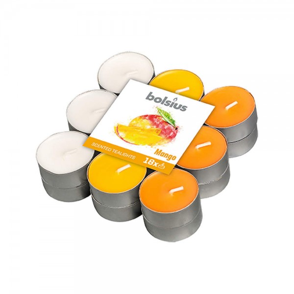 Описание на 18 бр. чаени свещи Bolsius с аромат на манго: