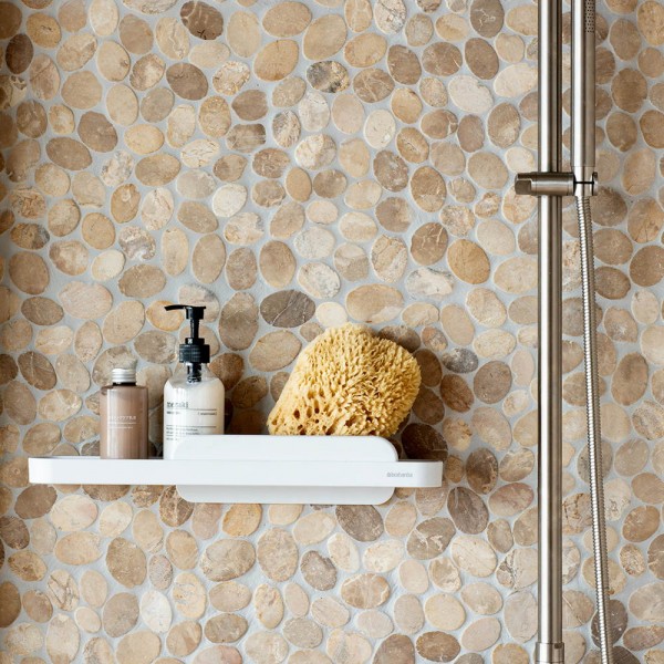 Бял рафт за душ с приставка за почистване Brabantia от серия MindSet