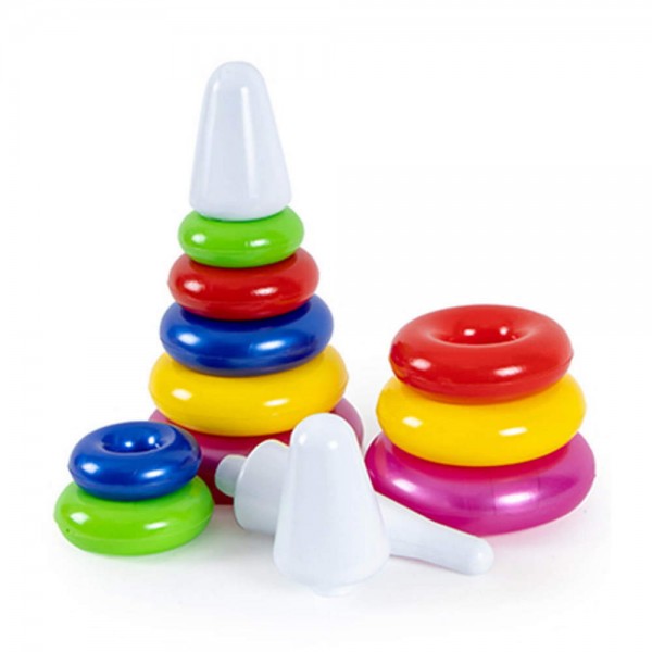 Бебешка образователна пирамида, която ще стимулира въображението и креативността на малките палавници. Съставена е от 5 цветни пръстена и конус, които вашето мъниче трябва да подреди по големина върху основата. А докато го прави, то неусетно и на шега, ще се научи да разпознава цветове и форми, ще развива концентрация и координация, ще усъвършенства логическото си мислене и какво ли още не!