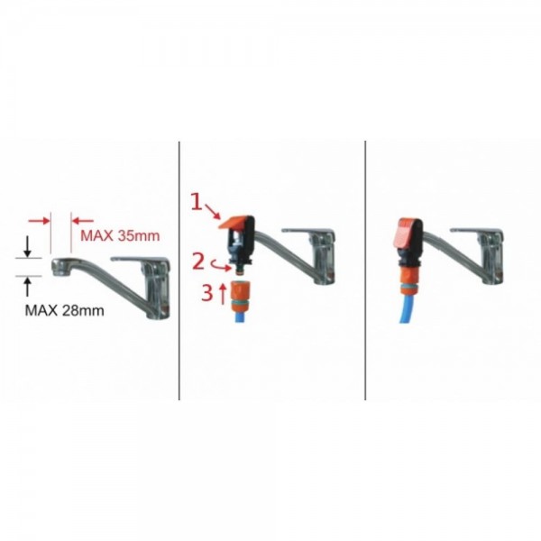 Универсален, регулируем конектор за свързване на маркуч с бърза връзка към някои видове смесители без да се използва резбово съединение.