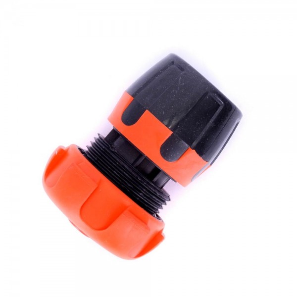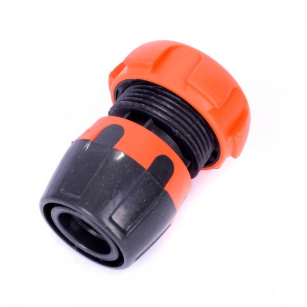 Висококачествена бърза връзка за маркучг 3/4". Такива може да закрепите от двете страни на маркуча за бързо включване на други компоненти и накрайници. Фитинга е оборудван със специално оформени зъбци, които осигуряват надеждно свързване дори към тънкостенни маркучи. Допълнително е установен стоп клапан, който спира водата ако няма включен накрайник или пистолет към бързата връзка.