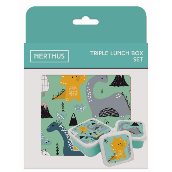 Описание на Сет от 3 бр детски кутии за храна Nerthus с декор Динозаври: