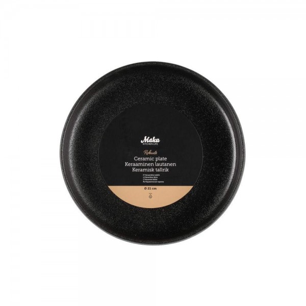 21 см основна чиния в цвят черен мат с повърхност стил чугун MAKU от серия Robuste