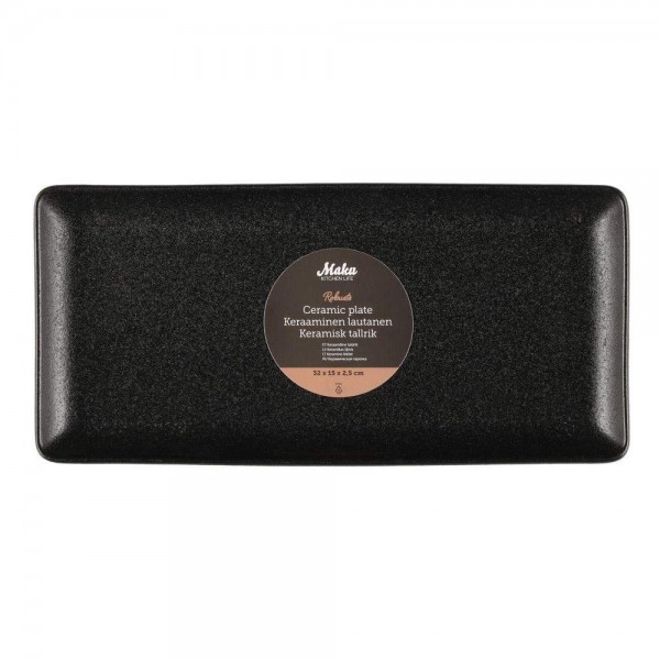 Описание на 32 х 15 см правоъгълна чиния в цвят черен мат с повърхност стил чугун MAKU от серия Robuste: