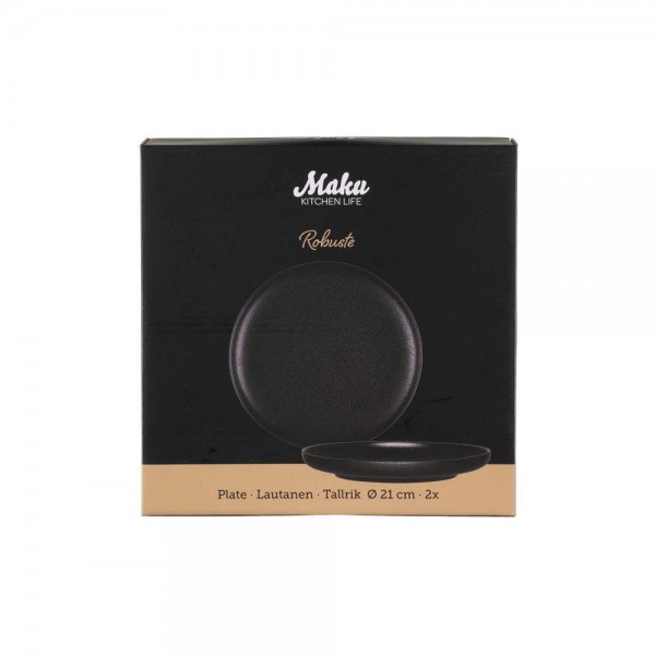 - MAKU Основна чиния Robuste 2 бр. Ø 21 см. - черен мат с повърхност стил чугун