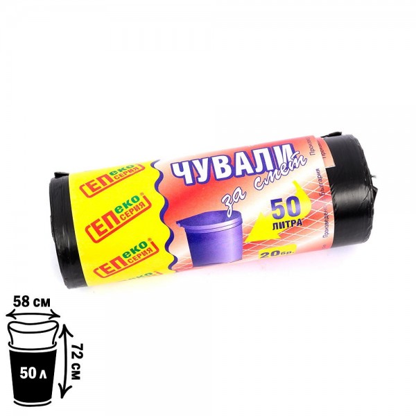 50 л. черни торбички за смет 20 бр. размер 58 х 72 см