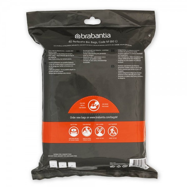 - Запасете се - 40 торбички, които пасват идеално на вашия 60 литров кош Brabantia (размер M)