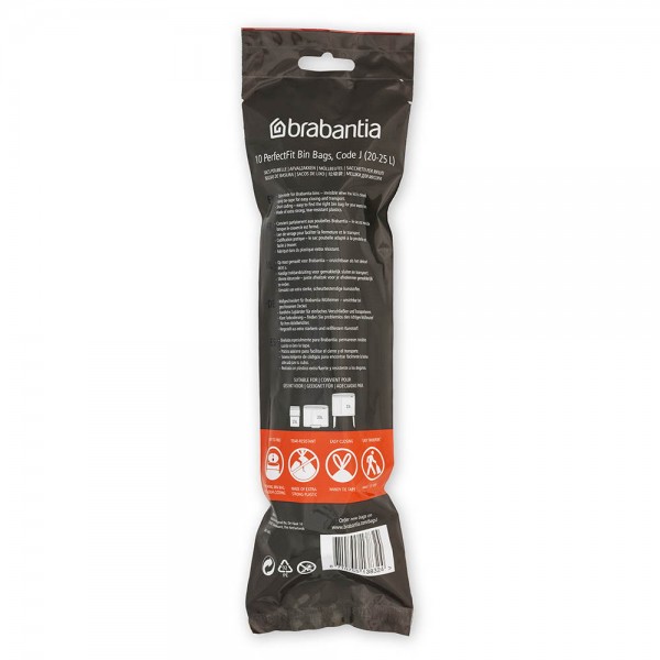 Торбичките за смет на Brabantia са изработени така, че да пасват идеално на кофата за смет Brabantia, вместо да стоят грозно извън нея. Затова те са много здрави, идват в удобен пакет и имат практична връзка за затваряне на торбичката. Просто издърпайте торбичката от коша и я затворете. Проверете цветния код от вътрешната страна на капака на Вашия кош и ще разберете кой размер торбички Ви е необходим! Снабдени са със специални вентилационни отвори, което ги прави лесни за изваждане от кофата за смет.