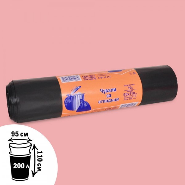 Описание на 200 л. черни чували за боклук 10 бр. размер 95 х 110 см: