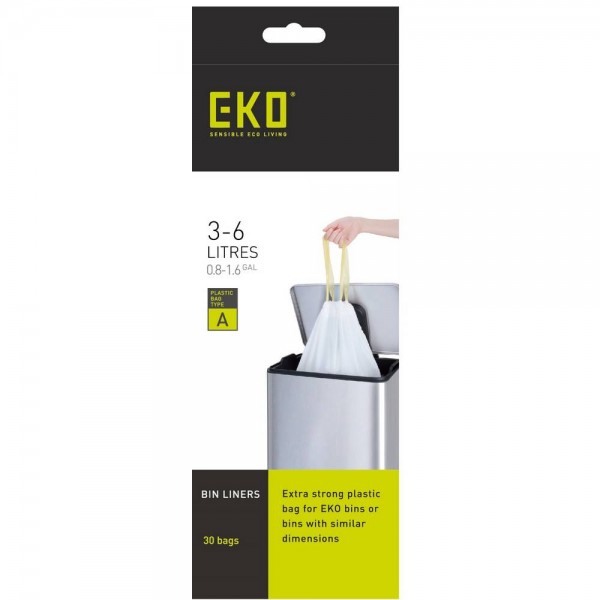 EKO Торби за смет с връзки. Много здрави и удобни торби за отпадъци. Съветваме Ви винаги да купувате правилния размер, съобразен с литрите на коша за смет, за който са предназначени.Торбите за смет на EKO са изработени от изключително здрав, издръжлив и качествен синтетичен материал. Те са с дръжки за връзване, за да се направи удобно и лесно изваждането и изнасянето на боклука. Торбите за смет на EKO са прецизно пригодени да отговарят на съответните кошчета EKO, но са подходящи и за други кошчета с подобни размери.