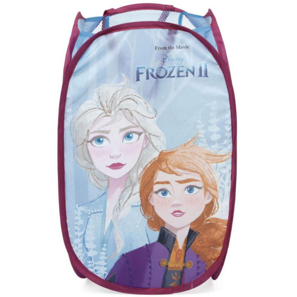 Детски текстилен кош за играчки Замръзналото кралство, сгъваем. Изработен по европейски дизайн, на испанския производител Arditex. С 3 мрежести страни и дръжки. Опаковка: полиетиленов плик. Подходящо за момичета над 3 години.