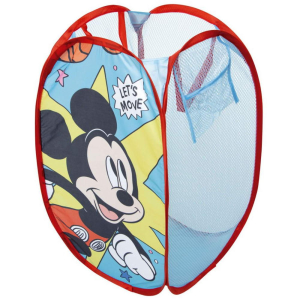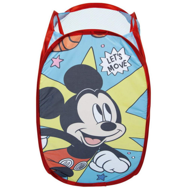 Детски текстилен кош за играчки Мики Маус, сгъваем. Изработен по европейски дизайн, на испанския производител Arditex. С 3 мрежести страни и дръжки. Опаковка: полиетиленов плик. Подходящо за момчета над 3 години.