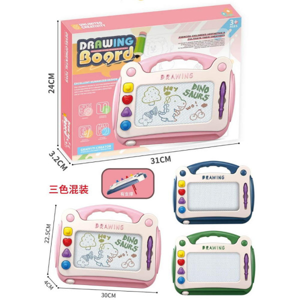 Магическа дъска за рисуване и писане. С 4 печата, писалка и изтриваща лента. Подходящо за момичета и момчета над 3 години.