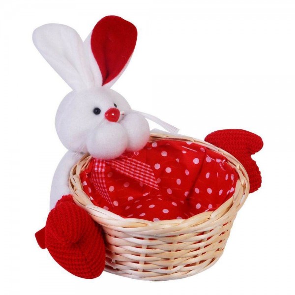 За много усмивки и прекрасно настроение на празника. Сладурска кошничка за декорация на вашата Великденска трапеза. Великденската кошничка - зайче с лекота ще създаде неповторим акцент на празничната трапеза. Вашите красиви великденски яйца ще се сгушат в меката прегръдка на зайко, а децата ви ще засияят щастливи около тях. Изработена от ярко червено и бяло с плетено сламено кошче лесно се съчетава с интериора на всяка кухня.