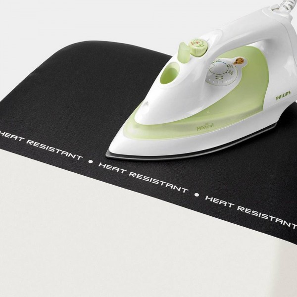 Ето това е удобство: XXL калъфка с вградена топлоустойчива поставка за ютия. Просто оставете ютията си върху дъската, без да се притеснявате от изгаряния по нея. Това е една нереално добра калъфка за гладачна дъска.