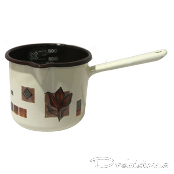 Описание на 600 мл бяло емайлирано джезве с декор Рустика: