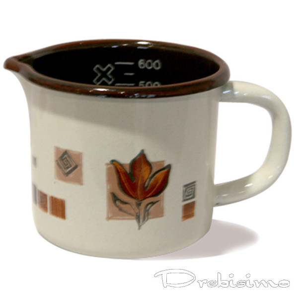 Описание на 600 мл бяло емайлирано канче с декор Рустика: