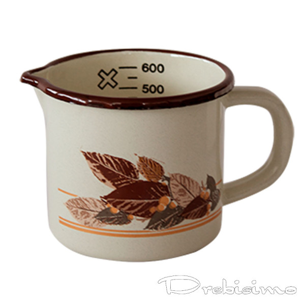 Описание на 600 мл бяло емайлирано канче с декор Есен: