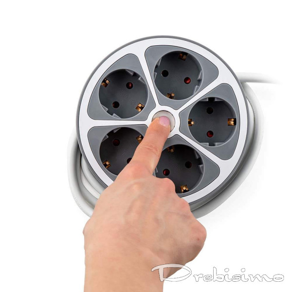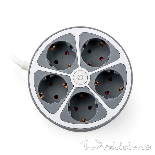 Кръгъл разклонител с ключ 5 гнезда и кабел 1,5 м