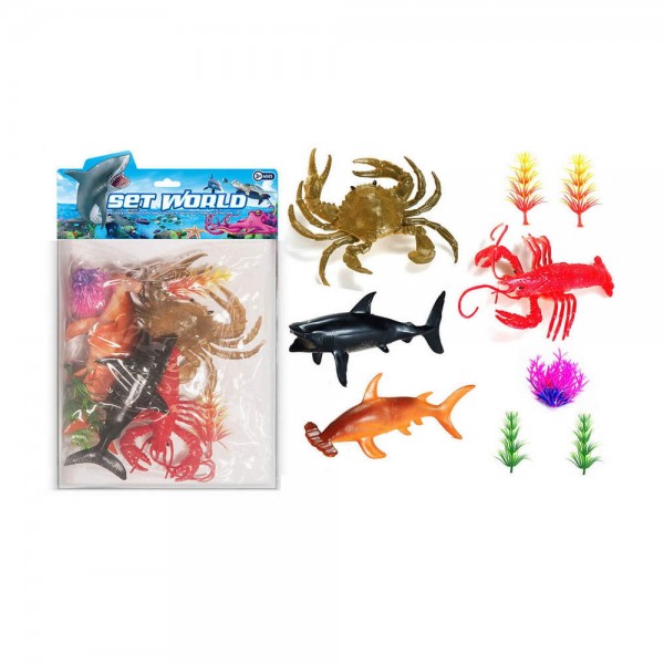 Колекция от 4 фигурки на морски и океански обитатели, която ще зарадва всички малки любители на тези животни и ще провокира любопитството и опознавателните им способности. Комплектът съдържа рак, омар, акула и акула чук. Ще намерите и цветни корали, които ще направят играта още по-забавна и реалистична.