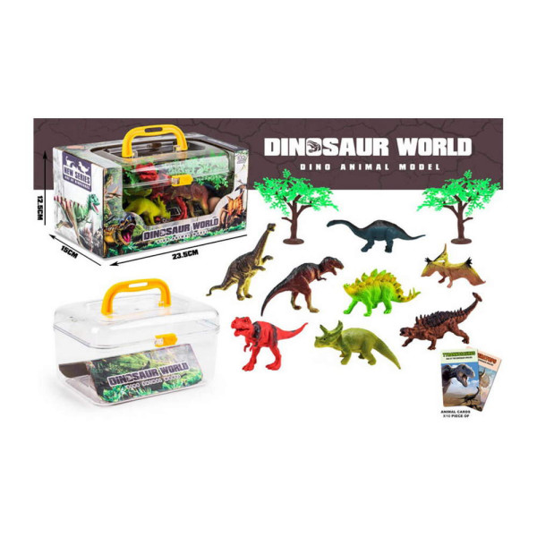 Колекция от 8 фигурки на различни динозаври, събрани в пластмасово куфарче. То е с удобна дръжка, за да можете да го носите навсякъде със себе си – в парка, на плажа, дори на гости у приятел. Комплектът включва 2 пластмасови дръвчета и 10 карти с животни. Устройвайте си игри и състезания, измисляйте различни сценарии и се забавлявайте, като се оставите на въображението си да ви води.