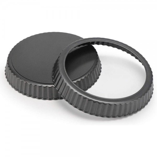 Форма за тарт или пица с подвижно дъно, изработена от стомана. Отличава се с голяма твърдост, устойчивост на деформиране, дълъг експлоатационен живот и безопасно за храната покритие. Страничната част на тавичката е с вълнообразен дизайн, което придава на изпечените продукти красива форма. Подвижното дъно улеснява равномерното печене, както и изваждането и охлаждането на готовите десерти, тартове и пици.