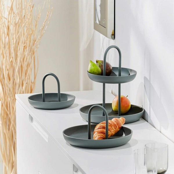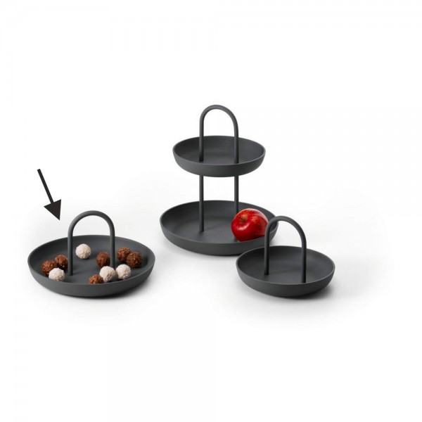 Това, което коренно разграничава серията PIATTO е изключително съвременния дизайн, който допринася за най-голямо удобство при пренос на съдовете от една маса на друга, благодарение на голямата дръжка. Този модерен дизайн на фруктиерите и на етажерката ги прави подходящи за сервиране на ядки, снаксове, плодове и сладкиши. Много са удачни и за сервирането на следобедни чайове, поднесени със сандвичи, кифлички или сладкиши с много стил. Те са устойчиви на счупване, благодарение на състава си от алуминий и стомана. Дали ще предпочетете съд на едно или две нива, няма значение - изборът ви е правилен!