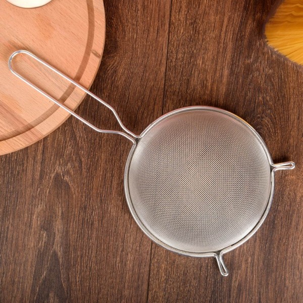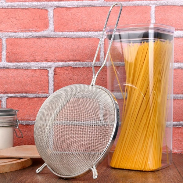 Устойчивата, неплъзгаща се цедка/сито с голяма 16 см кошница е универсален помощник в прецеждането на различни течности или пресяването на продукти. Стабилната конструкция, изработена изцяло от неръждаема стомана, правят цедката желан помощник в кухнята. Снабдена е с две подпори срещу дръжката за по-устойчиво поставяне върху тенджери и други съдове.
