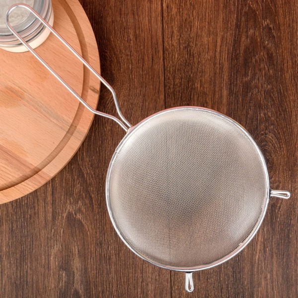 16 см дълбока метална цедка с дръжка и два държача