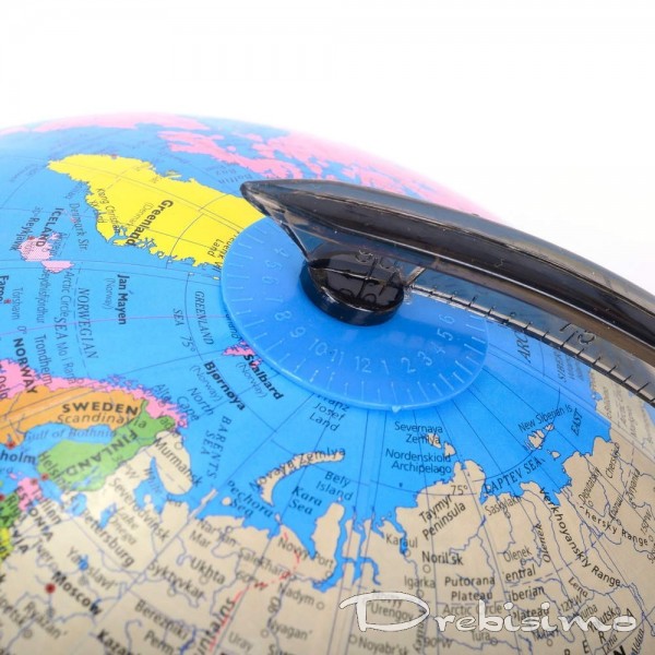 Това е забавен и достъпен начин да научите география у дома, в класната стая или в офиса. Използвайте го като ефектна декорация на вашата лавица, офис бюро или като акцент в детската стая. Глобусите са отлични учебни помагала и са интересен начин да мотивирате ученето и изследването на световната география от децата. Географския глобус включва модерна карта на Земята, с ярки сини океани и многоцветни континенти с политически граници. Глобалната карта ясно показва континенти, държави, океани и национални граници. Освен това разполага с лесни за четене паралелни мрежи за дължина, ширина, екватор и меридиан. Глобусът разполага със стойка от здрава пластмаса, с градусна скала за паралелите на земното кълбо.