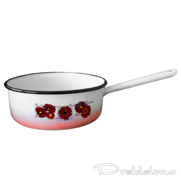 20 см дълбок емайлиран бял тиган с декор Гербери