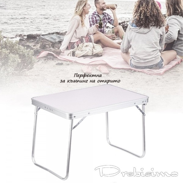 Многофункционална сгъваема туристическа масичка, която осигурява удобна повърхност за хранене, печене на скара, кетъринг или просто забавна игра на табла или карти. Особено подходяща е за дейности на открито като излет, пикник, барбекю, риболов, плаж, но също така е удобна и за използване на закрито. Масата е с алуминиева рамка и затварящи се крака за лесно съхранение и транспортиране. Опростения дизайн и леката конструкция на сгъваемата маса осигуряват удобна и безпроблемна употреба. Разгъването на масата е бързо и лесно без да е необходимо да се използват допълнителни инструменти. Здравите механизми в основата на краката гарантират, че масата стои стабилно в разгънато положение, а също така осигуряват бързо сгъване и пренасяне по всяко време.