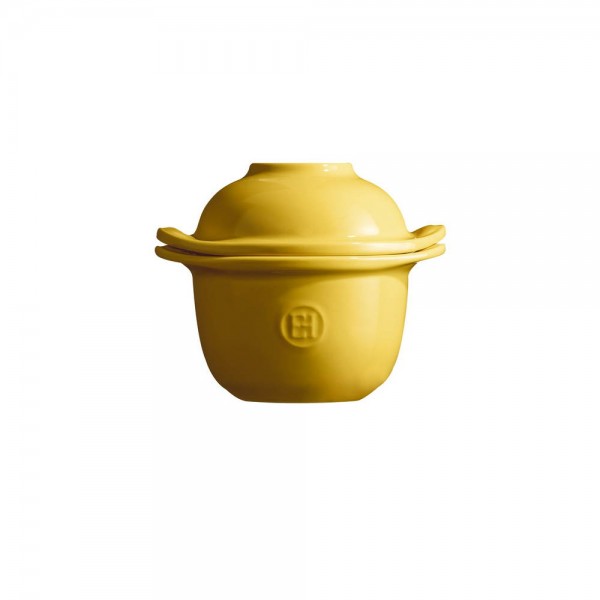 Описание на 14 см жълто керамично гювече с поставка за яйце EMILE HENRY: