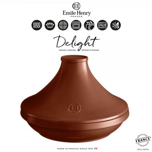 Описание на 34 см керемидено червен керамичен индукционен тажин EMILE HENRY от серия DELIGHT: