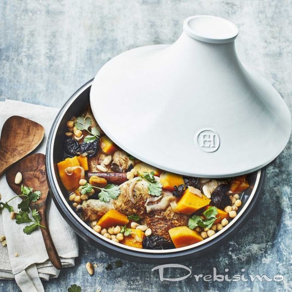 Тажинът „Delight“ ви позволява да приготвяте вкусни гозби по традиционни рецепти за тажини и други бавно приготвени ястия, на всички видове източници на топлина (включително индукционни котлони), или във фурната. Изработен от иновативна керамика, той е по-лек от класическия тажин и предлага предимството на здравословното готвене, запазвайки хранителните качества на използваните съставки. Освен това спомага за равномерното разпределяне на топлината за леко задушаване, извеждайки деликатните вкусове на съставките. Резултатът е нежен, сочен и пълен с вкус, благодарение на уникалната форма на капака, която позволява на изпарените сокове да циркулират в съда. Неговият естествен незалепващ емайл улеснява почистването и поддръжката.