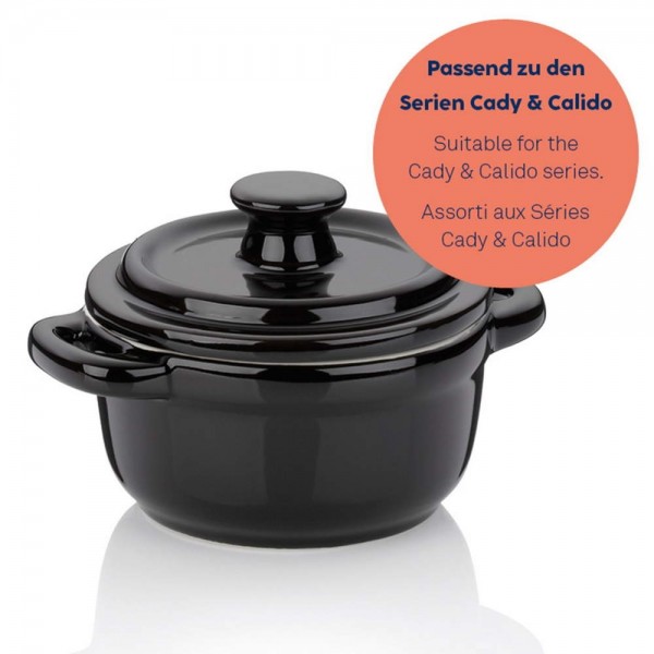 Описание на 14 см черно керамично гювече с капак KELA от серия Malin: