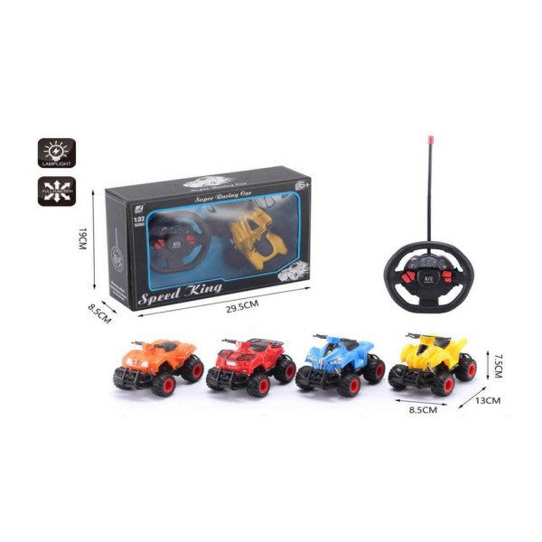 Детска играчка АТВ в мащаб 1:32, подходящо за екстремни приключения! То идва с атрактивен дизайн, гумирани колела, управлява се с дистанционно-волан, движи се във всички посоки и притежава светлинен ефект. А всичко това в комплект, е гаранция за 100-процентово добро настроение!