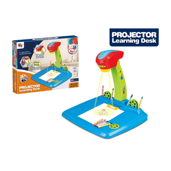 Дъска с проектор за рисуване. Включва 6 диска, като всеки съдържа по 6 картинки, 12 цвята пастели, стикери. Подходящо за момичета и момчета над 3 години.
