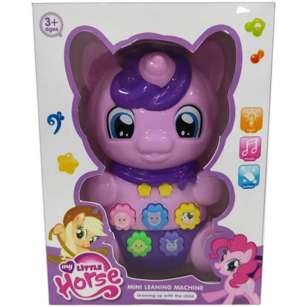 Бебешка музикална играчка пони-телефон в пастелен розово-лилав цвят, която няма как да остави равнодушно нито едно хлапе. Телефончето свети, а всяко бутонче възпроизвежда различни звуци, мелодии и дори брои до 10 (на английски език)!