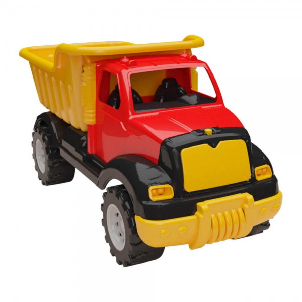 Детски камион самосвал за игра с отворено ремарке, в който можете да транспортирате различни товари. Изработен е от здрава пластмаса, с реалистична визия, и е прекрасен подарък за всеки малък мъж!