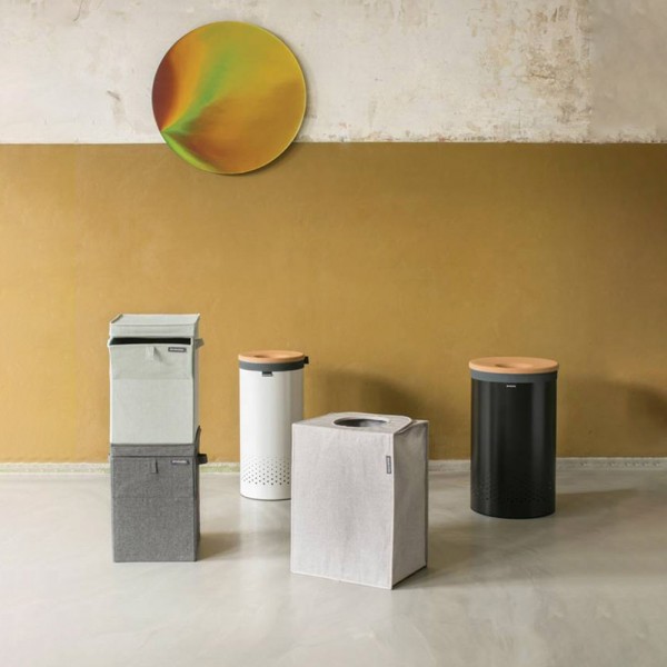 Имате мръсно пране? Дръжте го далеч от погледа си с помощта на този стилен 35-литров кош за пране на Brabantia. Капакът му е с отвор за бързо вкарване на по-малките дрехи в него - Quick-Drop, така че дори не се налага да го повдигате. А в дните за пране, вдигнете капака и лесно извадете идеално пасващата памучна торба за дрехи. Кошът не ръждясва и има вентилационни отвори, както и предпазен пръстен в долната си част, така че може да се постави навсякъде в дома Ви. Вече ще виждате прането в друга светлина.