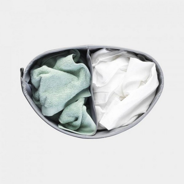 Разпределете прането си веднъж завинаги. Съберете и разделете своето пране в 55-литровия кош за пране Brabantia от серия Selector. Този щастлив кош е здрав, стилен и превръща ежедневните домакински задачи в забавление у дома. Той има умен капак със система Quick-Drop и изваждаща се памучна торба за пране с две отделения и практично затваряне с велкро лепенка. Самата тя може да се пере. В действителност получавате два коша за пране, заемащи мястото на един.