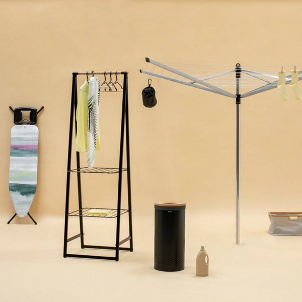 Подредете дрехите си по красив и прилежен начин с многофункционалната стойка за дрехи Brabantia от серия Linn. Тя стои в изправено положение, има здрав бамбуков прът за закачане на дрехи и два рафта с регулируема височина. Можете да използвате мебелта като сушилник и така спомагате за опазването на планетата или да я използвате за проветряване на дрехите ви по стилен начин, като ги окачите на закачалки и ги провесите. Имате нужда от стилно съхранение на дрехите си? Със сигурност ще останете доволни от тази мебел. Тя е идеална за поставяне в спалнята, пералното помещение или в коридора.