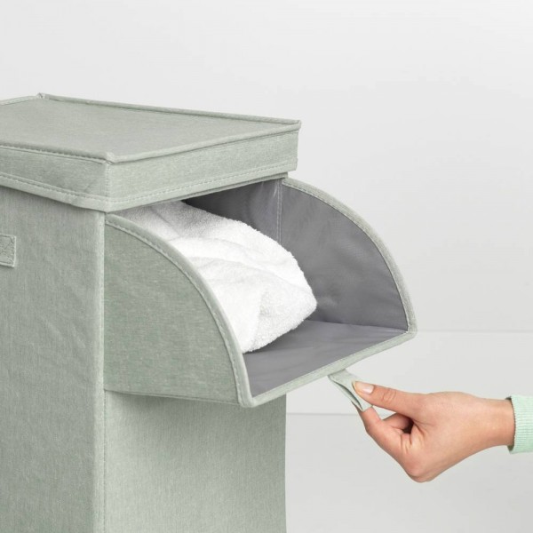 Искате да притежавате повече от един кош за пране, но нямате място? Тогава си вземете умния 35-литров кош за пране Brabantia с правоъгълна форма, който може да се надстройва. Така пестите до два пъти повече място! Тези здрави кутии имат капак отгоре и отвор в предната си част, така че да можете да вкарвате или изкарвате прането лесно. Надстройте няколко и създайте собствена система за разделяне на пране, заемаща възможно най-малко място!