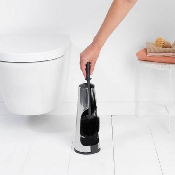 Описание на Четка за тоалетна с черна дръжка в цвят блестящ инокс и държач Brabantia от серия ReNew: