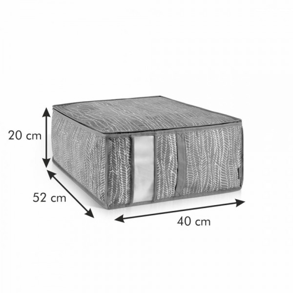Предназначен за съхранение на спално бельо и сезонни дрехи в гардероб или под леглото като ги предпазва от прах и замърсяване. Изработен от висококачествен дишащ синтетичен материал.