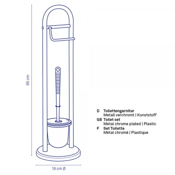 Най-добрите и полезни аксесоари за баня! Вие също ще останете изумени от предимствата на комплекта за тоалетна модел Fabio. С практичния тоалетен комплект винаги имате тоалетна хартия и четка под ръка. Пластмасовата чашка на четката за тоалетна просто се закача в металния пръстен и лесно се изпразва и почиства. Бялата глава на тоалетната четка може да се развие от пластмасовата дръжка и да се смени, когато е необходимо.