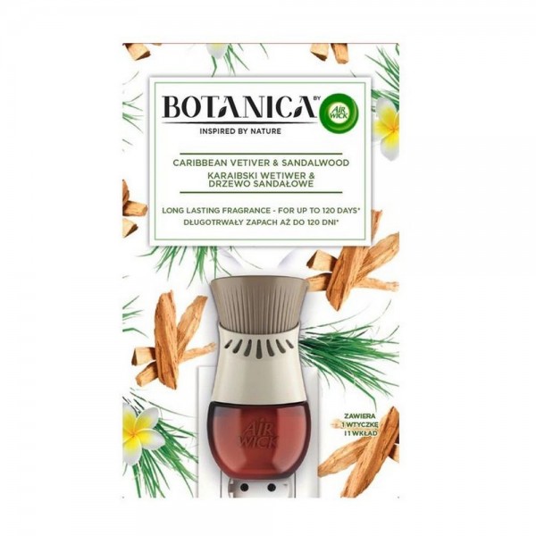 Описание на Ароматизатор за стая - електрически Air Wick серия BOTANICA с аромат на Карибски Ветивер и Сандалово дърво: