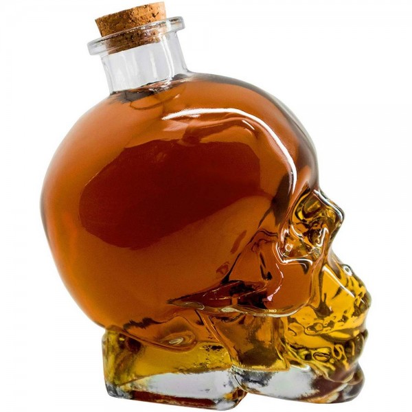 Стъклена бутилка за алкохол с 3D дизайн в готически стил, с формата на череп. Въпреки че нестандартният ѝ дизайн я кара да изглежда като декоративна, сувенирна бутилка, то тя е колкото интересна отвън, толкова практична отвътре. Бутилката - череп е изработена от стъкло, което я прави лесна за измиване и подходяща за всякакви напитки : водка, ракия, уиски, ром, ликьор и др. За да се предотврати изветряването на напитката, бутилката е снабдена с коркова тапа, която уплътнява добре гърлото. Прозрачността на материала прави лесно видимо количеството съдържание на бутилката - череп, а широкото гърло прави наливането лесно и удобно. Вземете тази стъклена бутилка с формата на череп и направете страхотен подарък на приятел!